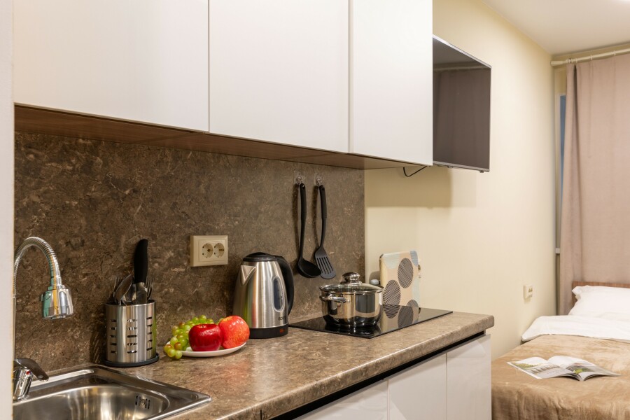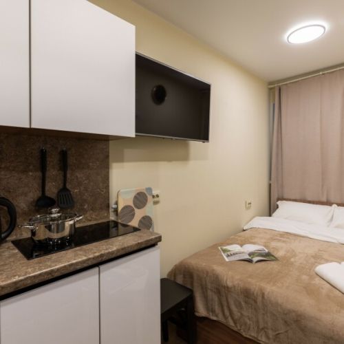 Апартаменты расположились в пятиэтажном историческом здании. В распоряжении гостей номер с современным интерьером. Среди удобств – кухонный уголок с электроплитой, стиральной машиной, электрочайником, микроволновой печью и мини-холодильником, телевизор и высокоскоростной интернет, санузел с душем.